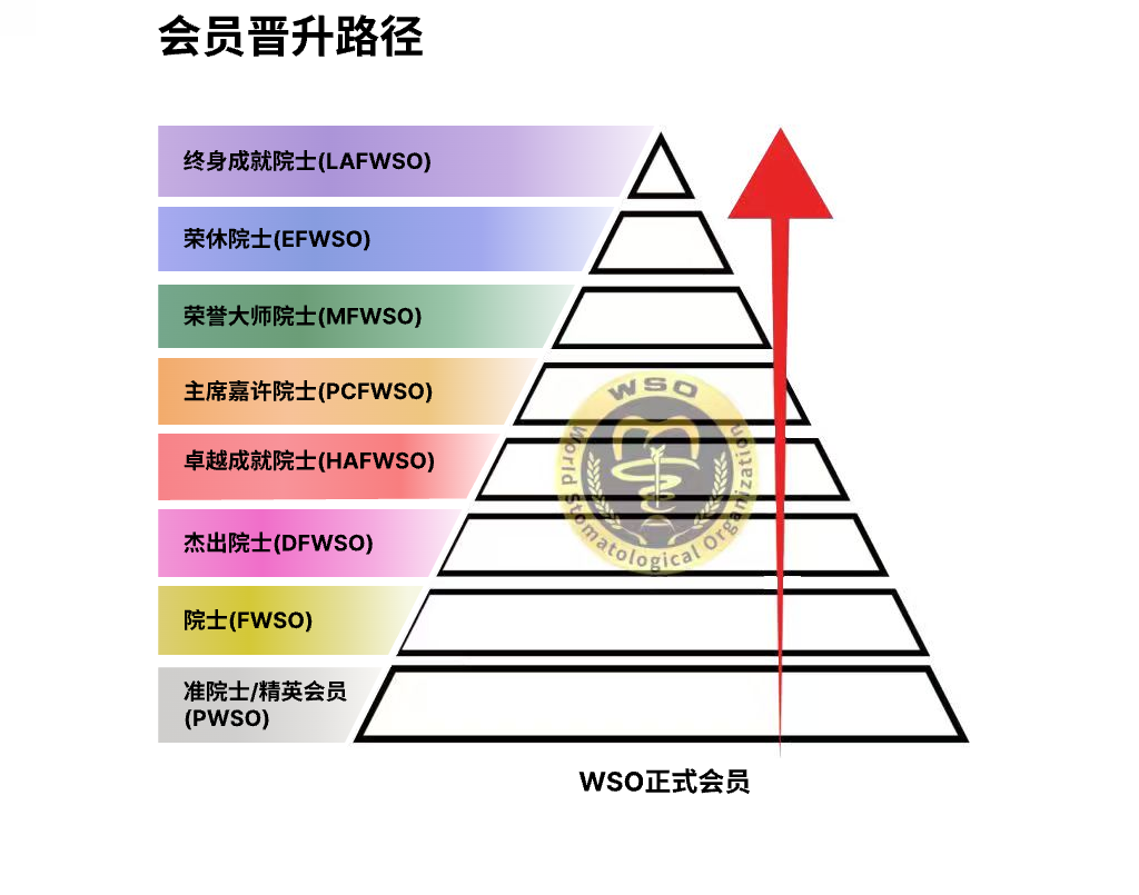 为确保长期的参与、有意义的认可以及可持续的发展,WS0制定了一套“会员晋升路径”;这是一个多层次的系统,能够让来自不同经验层次和背景的会员与组织共同成长,并相应地获得相应的认可。世界口腔医学组织(WSO)秉持包容性、可及性和全球团结的原则而建立。