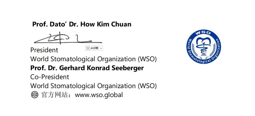 尊敬的世界口腔医学组织(WSO)各位院士同仁: